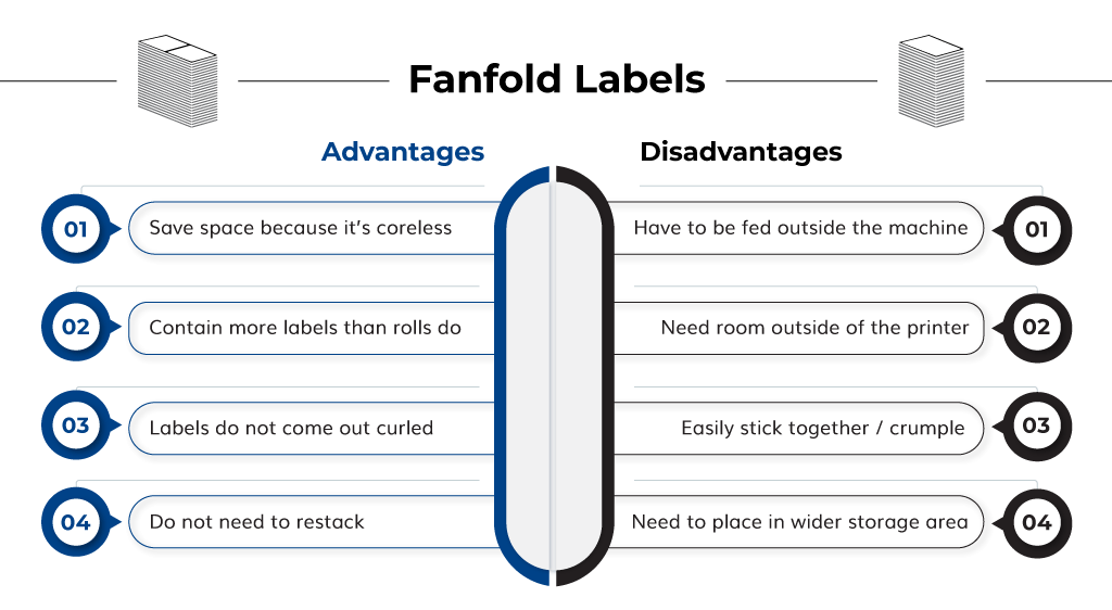 In our blog, Best Direct Thermal Printers for Small Businesses, we pointed out the most obvious differences between proprietary and generic labels. If you have been using a Rollo or a Zebra direct thermal printer for labeling, you must also have stocks of generic labels. You’re also probably aware by now that there are two kinds of continuous generic labels — direct thermal roll label and fanfold labels — and that both can enter the machine through a rear- or side-feed slot. You might have also read articles saying that one type is better than the other. But we’re writing this blog to tell you that you should go for both. Read on and we’ll explain why: CONTENT What Are Fanfold Labels? What Are Roll Labels? When Should You Use One and Not the Other? What Are Fanfold Labels? Fanfold labels are the best label type to go for high-volume printing. Similar to roll labels, fanfold labels are also mounted on a continuous liner but are stacked and folded similar to a fan, thus its name. Typically, fanfold labels can contain more individual labels than rolled labels, as they are used in printing without the need to mount them inside a label printer. When using fanfold labels, you can usually place them behind the printer and run them through a slot at the back of the printer, and then into the printer roller. Since fanfold labels are not installed inside a printer, there is no limit to how many labels are in a single package of a fanfold label. Fanfold labels can contain 500 labels up to 2000 per pack! This gives an advantage over roll labels in the case of large-scale printing. On the other hand, they are prone to outside elements such as dirt and spillages. You may need to provide cover for the labels. As for mobile printing, fanfold labels cannot be a reliable material, as it is bulky and needs a wider desk area to set up. Fanfold labels are also much easier to store as they can contain more labels per box and are densely packed. Learn More: View all available sizes for fanfold labels in our store. Don’t miss our exciting offers! Buy Cheap Sheet Labels Same as Avery! Buy Cheap Dymo Shipping Labels at enKo Products! Shop a variety of sizes for our Brother DK Labels. Can’t find what you are looking for? Explore all of our Direct Thermal Labels in standard sizes. Buy our Fanfold Labels at up to 30% Lower Price! 4″ x 6″ FanFold Labels -1 Label/Fold[500 Labels/Stack] SHOP NOW 4″ x 6″ FanFold Labels -2 Labels/Fold[2000 Labels/Stack] SHOP NOW What Are the Advantages of Fanfold Labels? The following are touted as fanfolds’ benefits over rolls: Fanfolds let you save space because they are coreless media. Fanfold stacks contain more labels than rolls do. For example, 8” media have 1,000 stickers, but the largest fanfold stacks have double this number. This allows for less reloading time and higher productivity when you have great labeling needs. Fanfold labels do not come out curled, so it is easier to peel them by hand. Probably the most important advantage of fanfolds is that you do not need to restack them after printing as they naturally do it. You can then attend to your other office chores while the label maker is running. What Are the Disadvantages of Fanfold Labels? If you think that fanfold labels are so much better than rolls, think again. They also come with the following snags: They are less suitable for portable printers as they have to be fed outside the machine. Fanfolds are inconvenient if you have a limited desk space as they need room outside of the thermal printer. Unlike label rolls, fanfolds have a greater tendency to stick together or crumple in the presence of static electricity, exposed adhesive or a glossy sticker finish. They are thus more prone to jamming under those circumstances. It would be best if you put fanfolds in a storage area that is wider than taller. When the labels are stacked on top of one another, those at the top exert their weight on those below. This increases the bottom labels’ tackiness and causes some adhesive to stick out due to pressure. Again, protuberant adhesive is a common cause of printer jams. You can see from the above that label rolls are better in some situations, while the use of fanfolds is more advantageous in others. Therefore, you will need to keep supplies of both for your day-to-day operations. What Are Roll Labels? Roll labels are spun around a cardboard core, usually 1” or 3” in diameter. A spool is placed within this core, which secures it in the printer’s media holder aided by side supports. If your machine uses generic labels, you have the option to place the roll on a separate mount outside the printer and expand the media volume. Desktop thermal printers typically have internal label holders that can load media with a 4” or 5” outer diameter. On the other hand, external roll mounts can accommodate media with an 8” outer diameter. Buy our Direct Thermal Labels at up to 65% Lower Price! 4" × 2" Compatible Zebra Labels (1 inch Core) SHOP NOW 4" × 6" Direct Thermal Labels (1 inch Core) SHOP NOW What Are the Advantages of Roll Labels? Roll labels are better to use on certain occasions because of the following: Small- to mid-sized rolls do not require extra desktop space when printing. This is important when you need to be mobile. When your tags are constantly sticking out from the printer, they look untidy and unprofessional, are vulnerable to damage and waste, may distract you from your tasks, etc. Roll labels do not easily crumple or stick together, which may occur if you’re using glossy paper or if some adhesive is sticking out. These situations lead to logjams and waste. Roll labels are less prone to static buildup. This usually occurs in dry environments, on the surfaces of synthetic materials, when electronics are near large metallic objects, etc. Static buildup not only leads to paper jams, but they also reduce your thermal print head’s life span. When your label storage space is talle